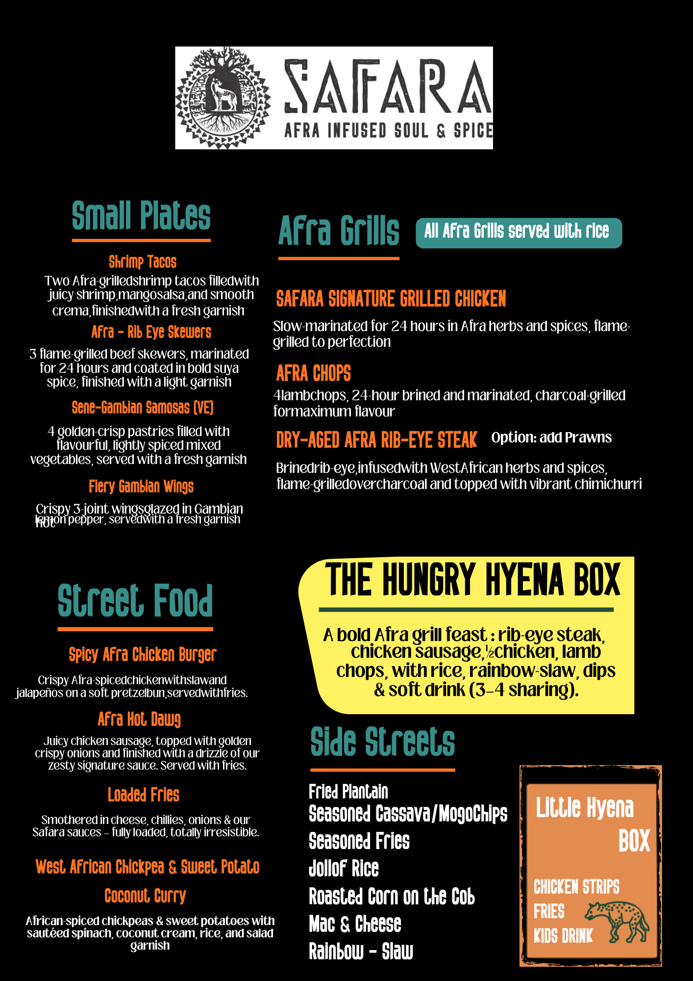 We’re more than just a dining experience, Safara is a journey—one that embraces the shared spirit of African and Caribbean food, from the fiery jerk marinades to the deep, comforting flavours of West African spice blends. With a menu crafted with passion, artistry, and love, Safara invites you to taste the heart and soul of two worlds united on a single plate.
